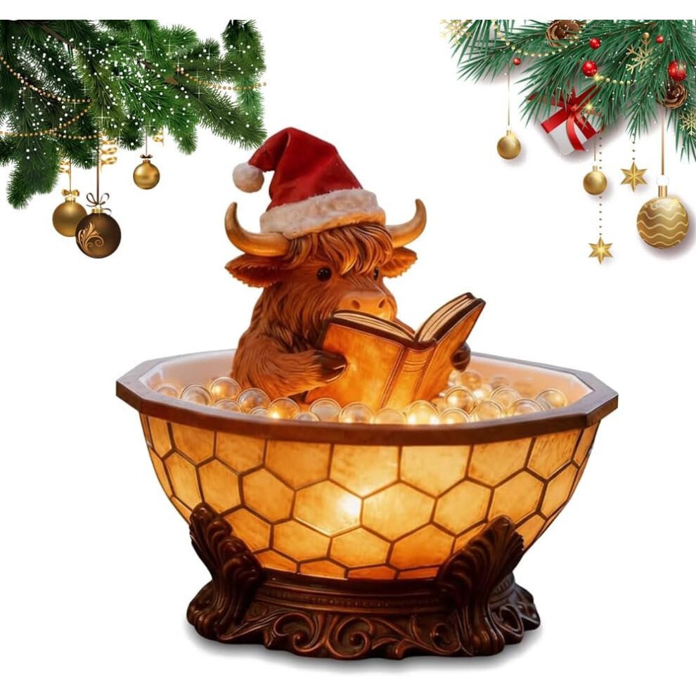 Christmas Highland Cow Bubble Bath Lamp, 3D Animal Reading Book Nightlight Bathtub Nightlights Decorations for Xmas Party