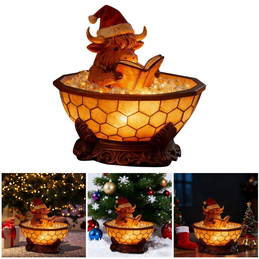 Christmas Highland Cow Reading Bubble Bath Lamp, 3D Animal Reading Book Nightlight Festive Animal-Themed Xmas Party Decor