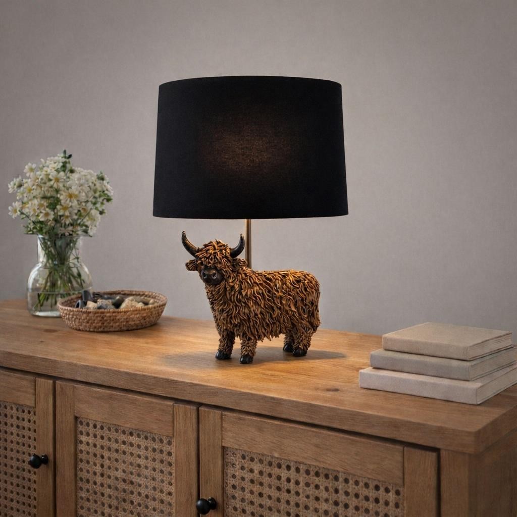 Highland Cow Table Lamp Country Home Styling Modern Lighting Living Room Space