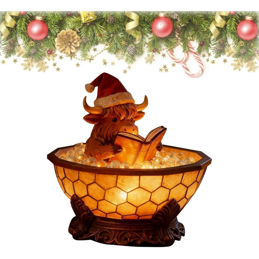 Reading Bubble Bath Highland Cow Lamp - Cute Light Up Decor & Night Light, Christmas Highland Cow Gift & Cozy Cow Decor for Home