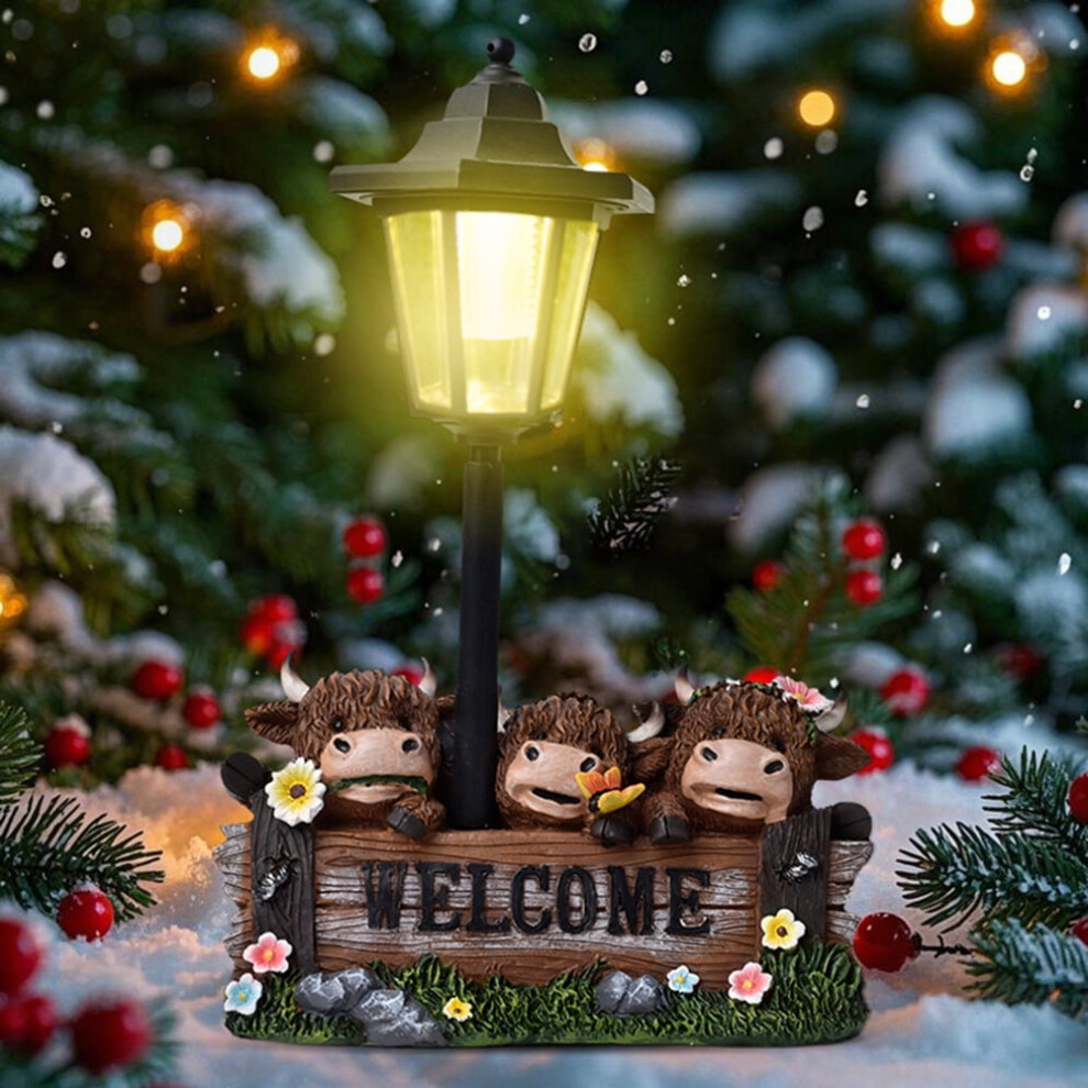 Solar Garden Statues - Welcome Solar Lamp with Adorable Highland Cow Figurines for Patio, Yard, Garden Ornaments