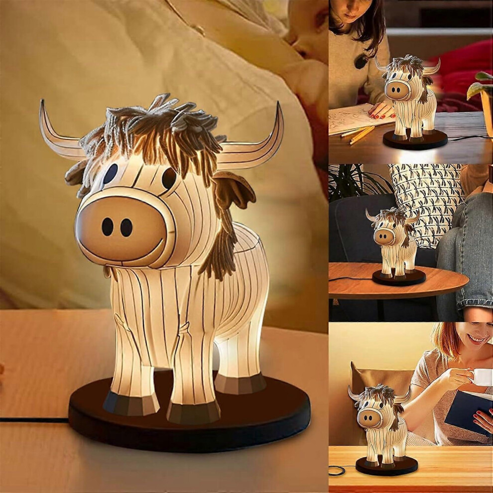 CNNOTEPAD Cow Bedside Lamp 3D HighlandCow Design Animal Nightstand