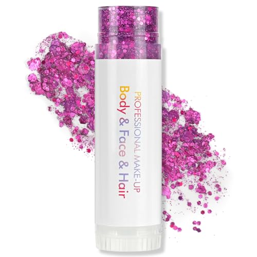 AOOWU Body Glitter Stick, Highlighter Makeup Stick Glitter Powder Waterproof Glitter Shiny for Women Face Glitters Shimmer Sparkle Powder for Hair Lip Nails Body Glitter Makeup(Purple)