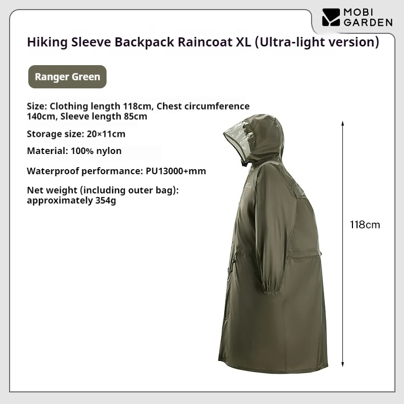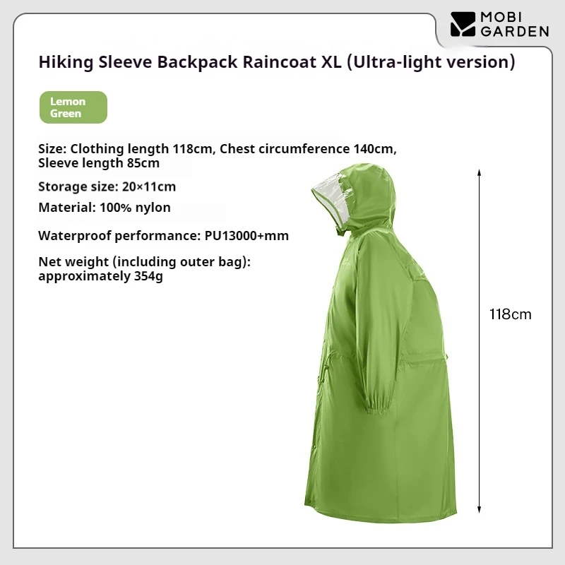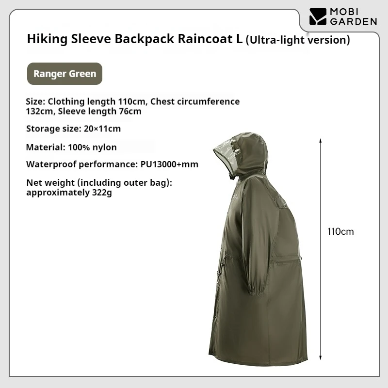 322G Ultralight Professional Hiking Rain Poncho PU13000 Sleeve Backpack Portable