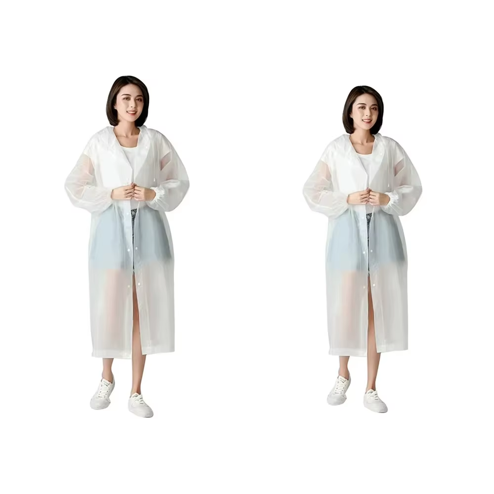 (white) Non-Disposable Padded Adult Raincoat Outdoor Travel EVA Hiking Poncho Rain Suit Rain Waterproof Rain Gear