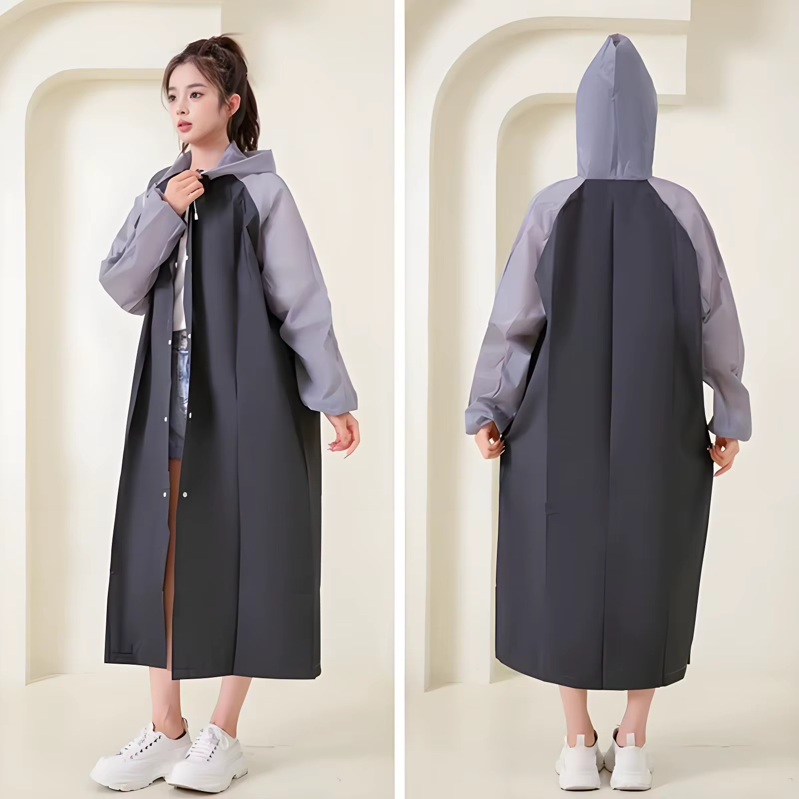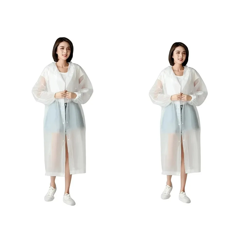 (White) Adult Raincoat Reusable Hooded Rain Poncho Hiking Travel Thickened Rain Coat