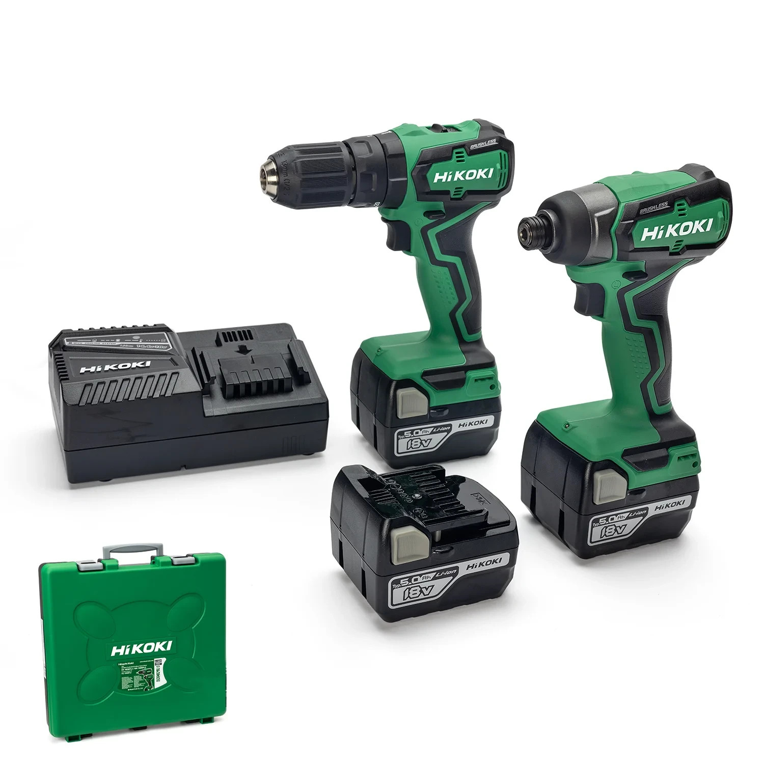 HiKOKI KC18DEJAZ Cordless brushless Combo kit (Combi Drill, Impact Driver, Charger, 2 x 18v 5.0Ah Batteries in a case)