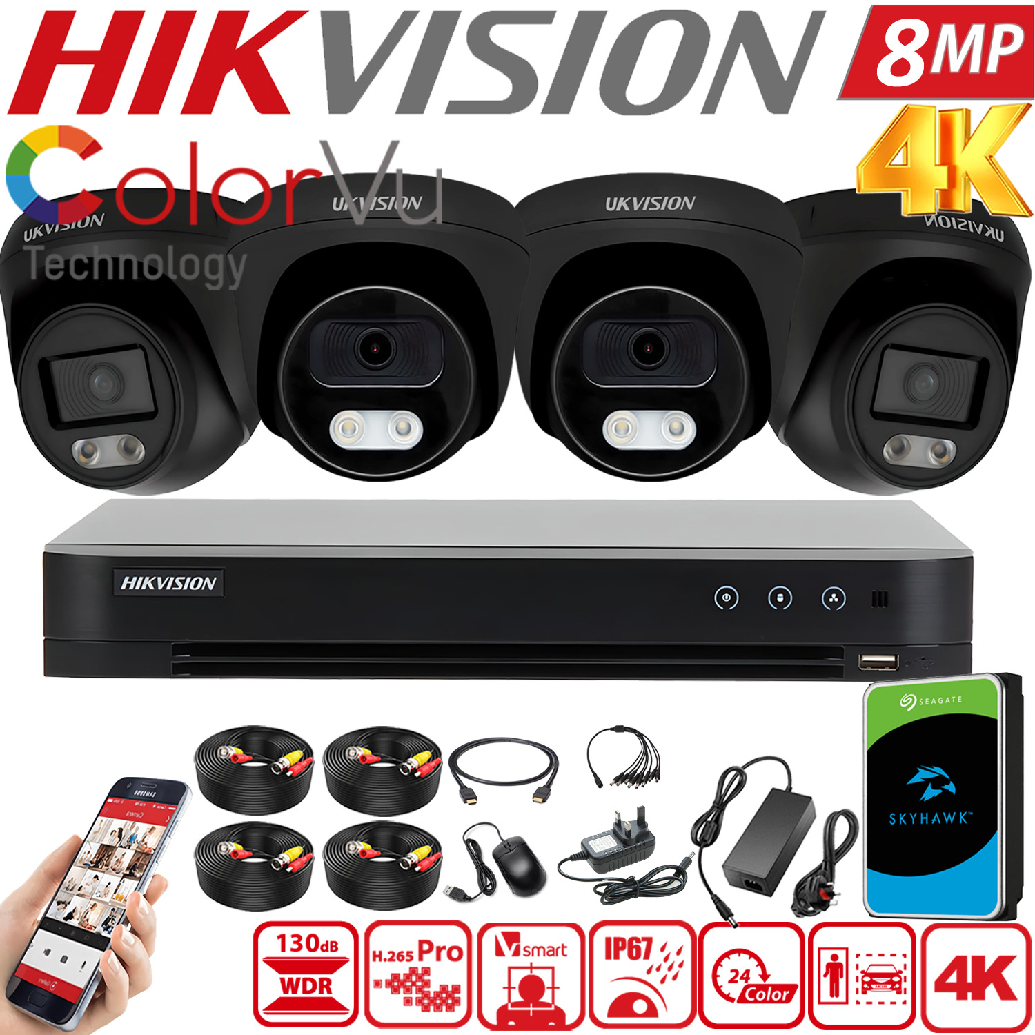 HIKVISION 8MP ColorVu CCTV Outdoor Camera 4K Security System 4CH DVR + 1TB Kit