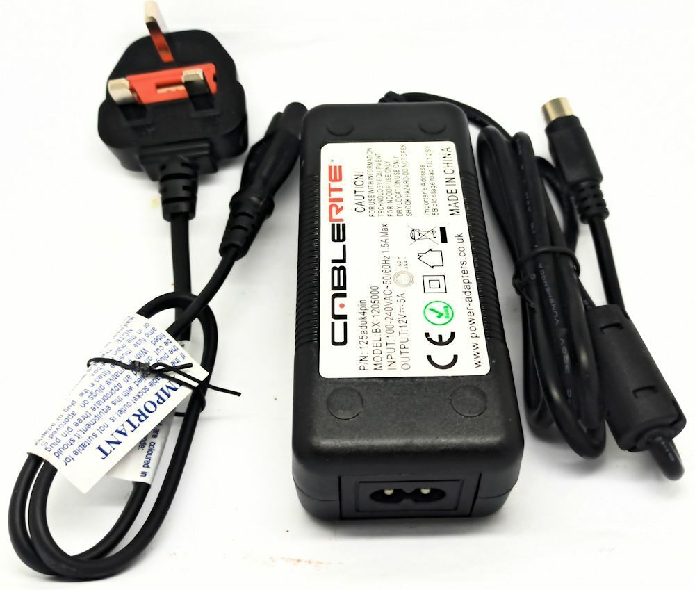 12V 5A 60W AC Adapter for Alba, Alphatronics, Bush, Crown, Denson, Digihome, Dual, Finlux, Goodmans, Hikvision DVR, Hitachi, ICY BOX, Logik,