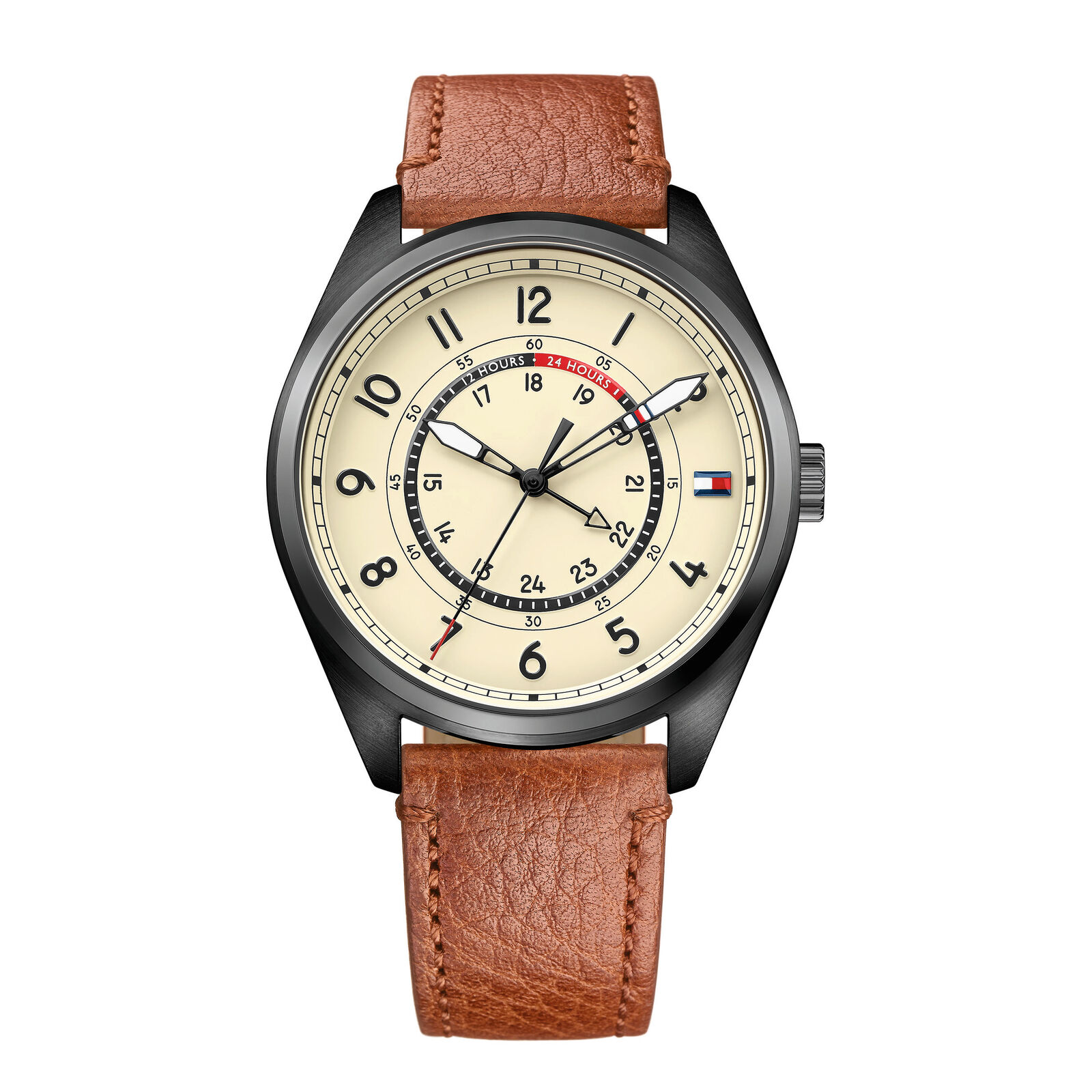 Tommy Hilfiger Men's Watch Brown Leather Strap Black Dial Hendrix 1791876