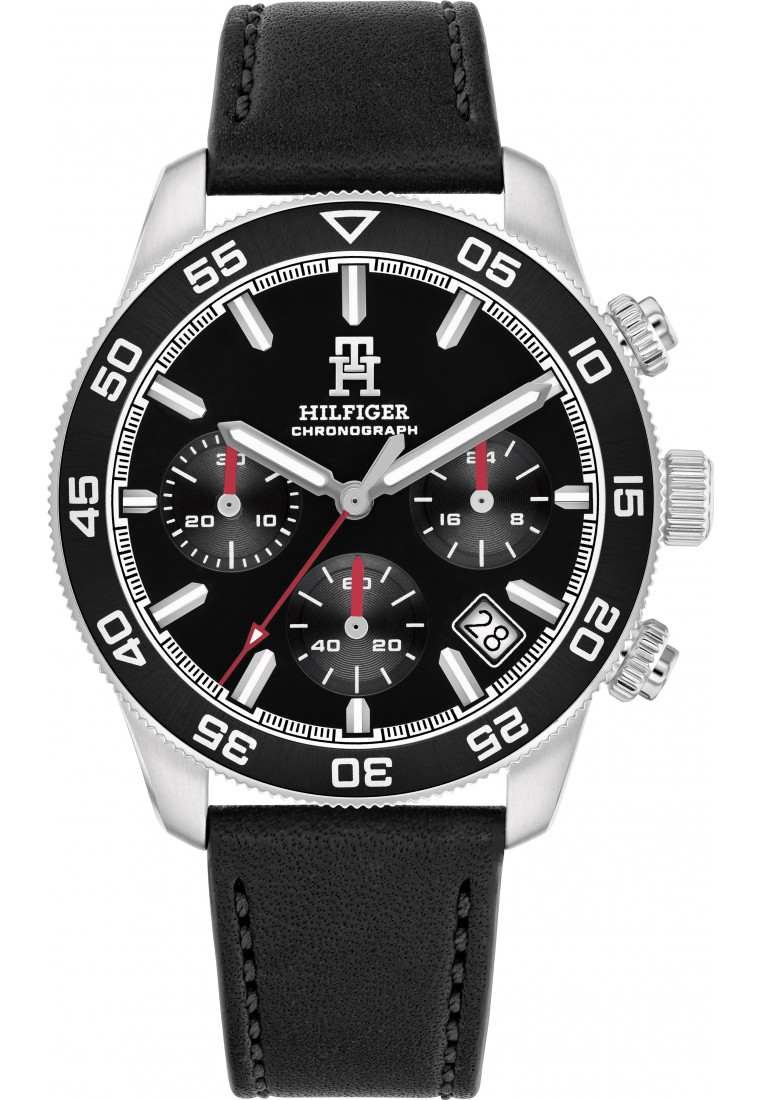 Tommy Hilfiger Men's Watch 1710391 - Black Dial, 44mm, Leather Strap, Stainless Steel Case, Analog, 3ATM