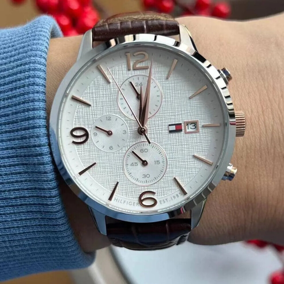 Tommy Hilfiger Men's Watch Brown Leather Silver Dial Sullivan 1791884 For Him