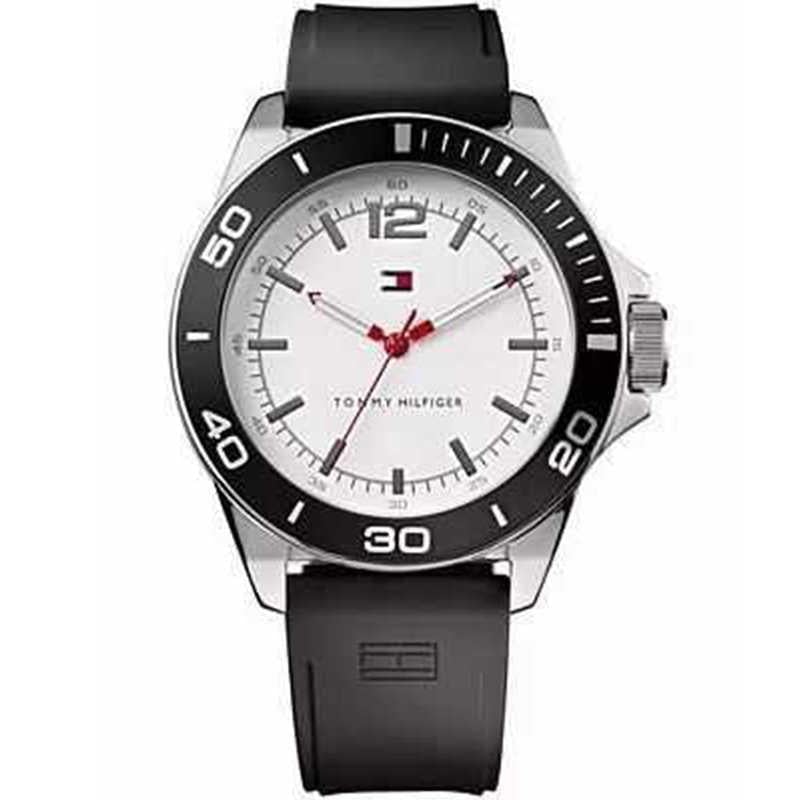 TOMMY HILFIGER MEN'S WATCH Black Dial Red Rubber Strap Watch 1791722