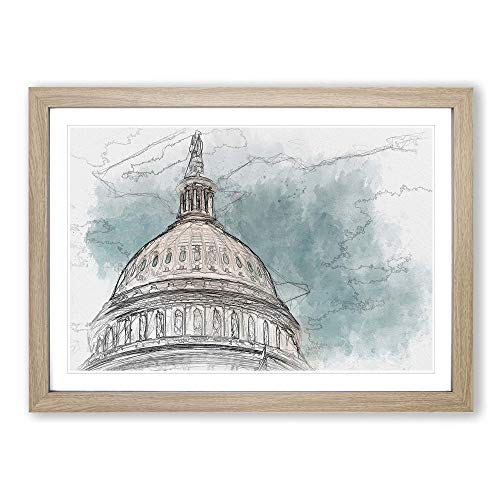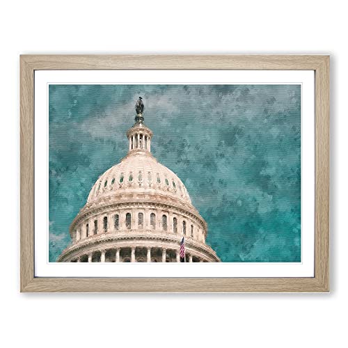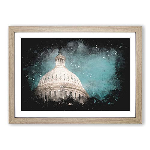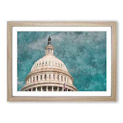 Capitol Hill White House Painting Modern Art Framed Wall Art Print, Ready to Hang Picture for Living Room Bedroom Home Office Décor, Oak A3 (46 x 34 cm)
