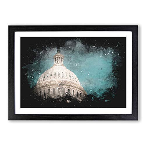 Capitol Hill White House Watercolour Modern Framed Wall Art Print, Ready to Hang Picture for Living Room Bedroom Home Office Décor, Black A2 (64 x 46 cm)