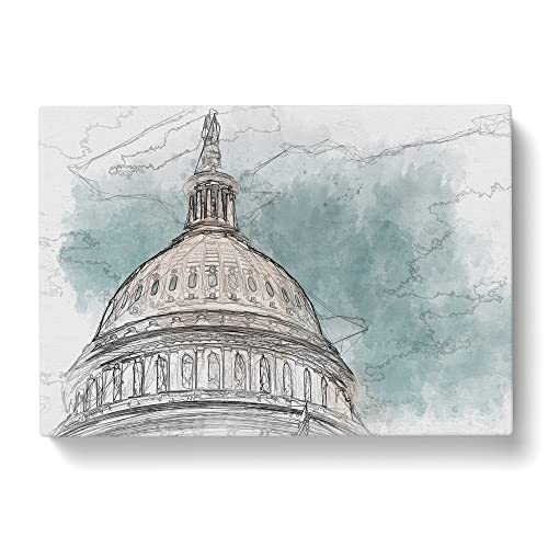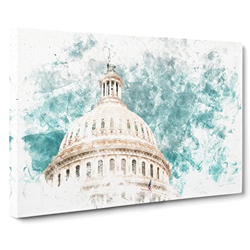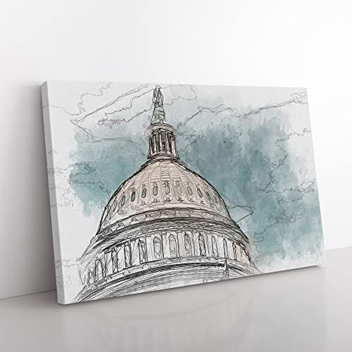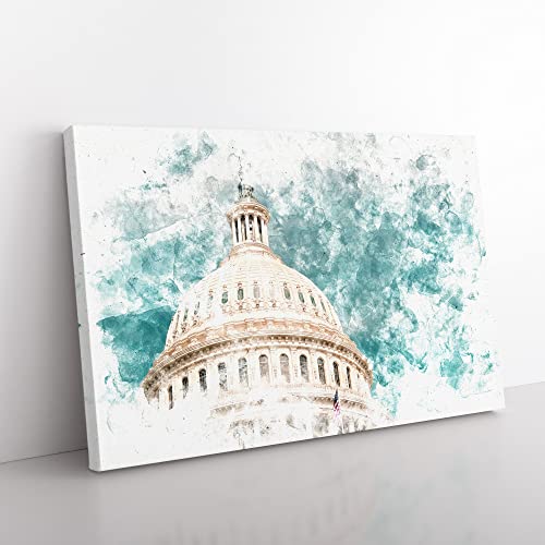 Capitol Hill White House Watercolour Canvas Print for Living Room Bedroom Home Office Décor, Wall Art Picture Ready to Hang, 30 x 20 Inch (76 x 50 cm)
