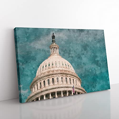 Capitol Hill White House Canvas Print for Living Room Bedroom Home Office Décor, Wall Art Picture Ready to Hang, 30 x 20 Inch (76 x 50 cm)