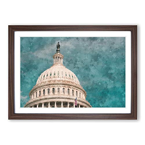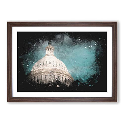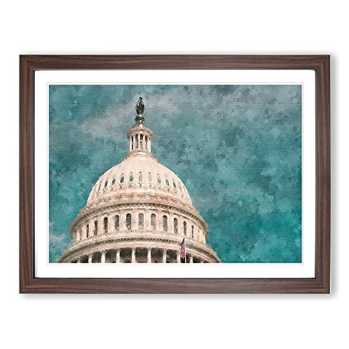 Capitol Hill White House Painting Modern Art Framed Wall Art Print, Ready to Hang Picture for Living Room Bedroom Home Office Décor, Walnut A4 (34 x 25 cm)