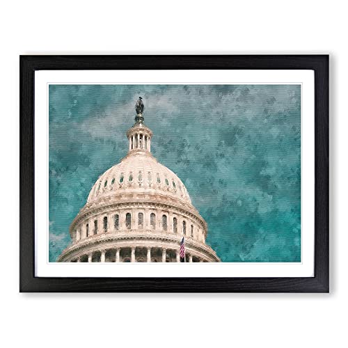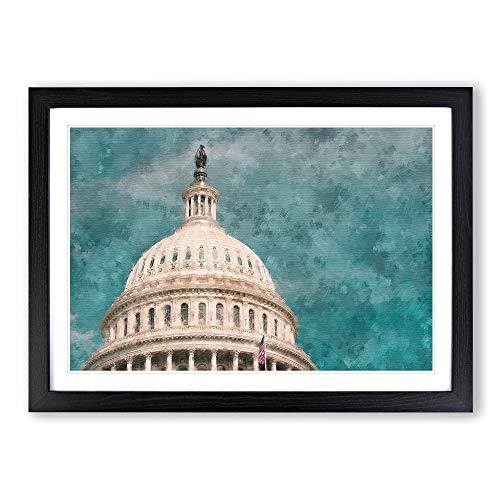Capitol Hill White House Painting Modern Art Framed Wall Art Print, Ready to Hang Picture for Living Room Bedroom Home Office Décor, Black A4 (34 x 25 cm)