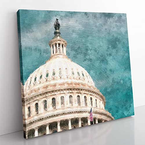 Capitol Hill White House Painting Modern Canvas Wall Art Print Ready to Hang, Framed Picture for Living Room Bedroom Home Office Décor, 50x50 cm (20x20 Inch)