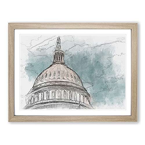 Capitol Hill White House Painting Modern Art Framed Wall Art Print, Ready to Hang Picture for Living Room Bedroom Home Office Décor, Oak A4 (34 x 25 cm)