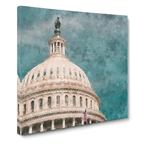Capitol Hill White House Painting Modern Canvas Wall Art Print Ready to Hang, Framed Picture for Living Room Bedroom Home Office Décor, 20x20 Inch (50x50 cm)