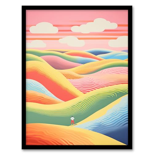 Artery8 Dreamland Hills Painting Abstract Golden Mountains Under Pink Skies Artwork Framed Wall Art Print 18X24 Inch