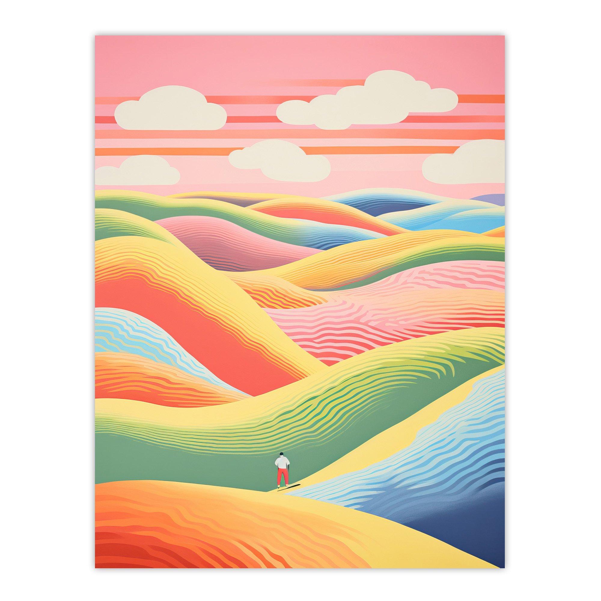 Artery8 Dreamland Hills Painting Abstract Golden Mountains Under Pink Skies Large Wall Art Poster Print Thick Paper 18X24 Inch