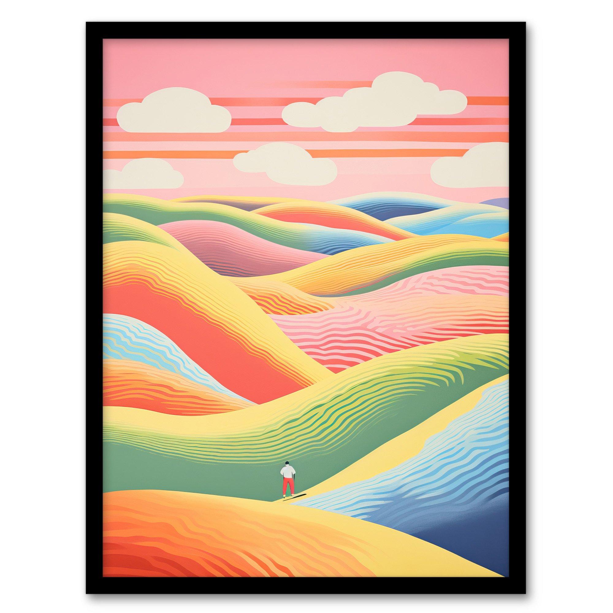 Artery8 Dreamland Hills Painting Abstract Golden Mountains Under Pink Skies Artwork Framed Wall Art Print A4