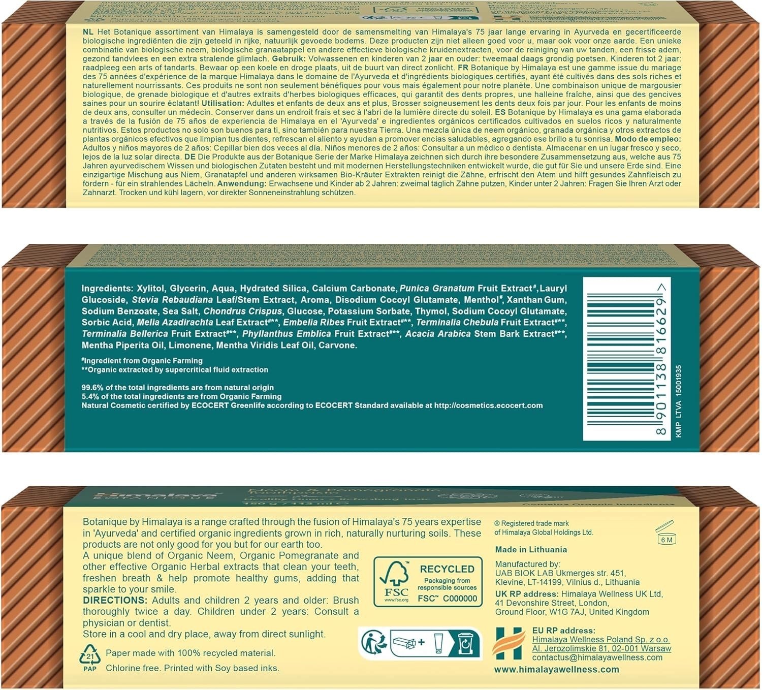 Ecocert Cosmos Natural Certified Himalaya Botanique Neem & Pomegranate Tooth