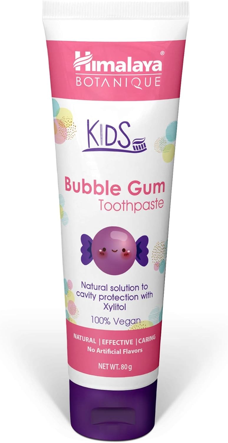 Himalaya Botanique Kids Toothpaste | Bubble Gum Flavor | Reduces Plaque and Makes Teeth Stronger | Increases Teeth-Gum Grip | Fluoride Free, Vegan & Gluten Free- 80g