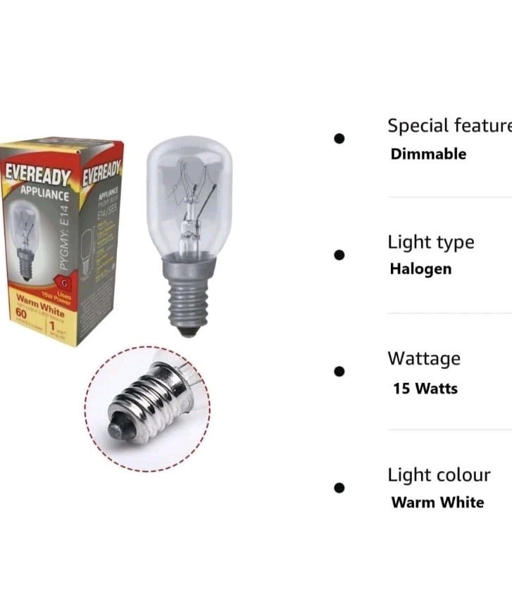 Himalayan Salt Lamp Bulb 15W Appliances Bulb SES Small Screw E14 Eveready UK