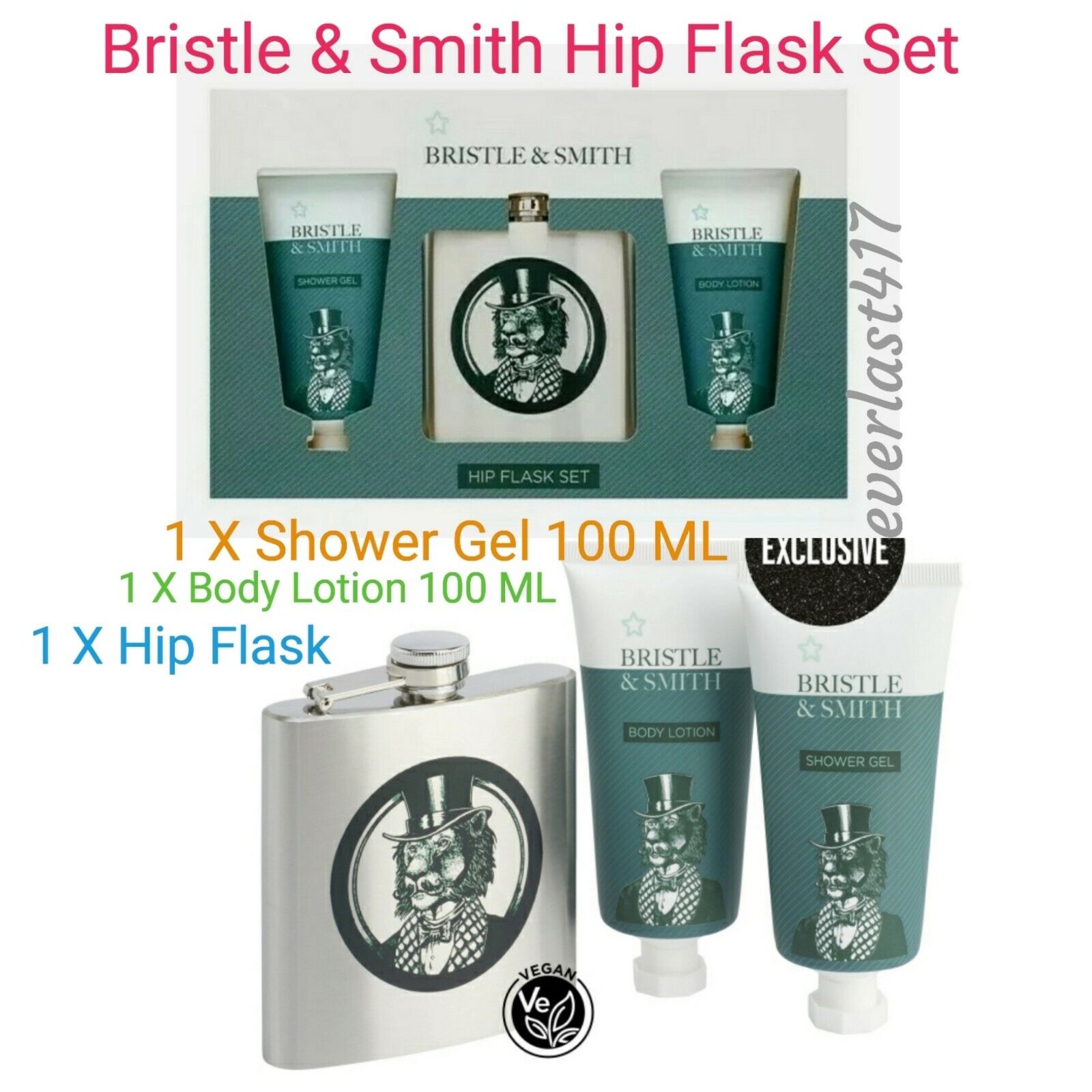 Bristle Smith 3Pcs Gift Set For Him Shower Gel Body Lotion Hip Flask for Him