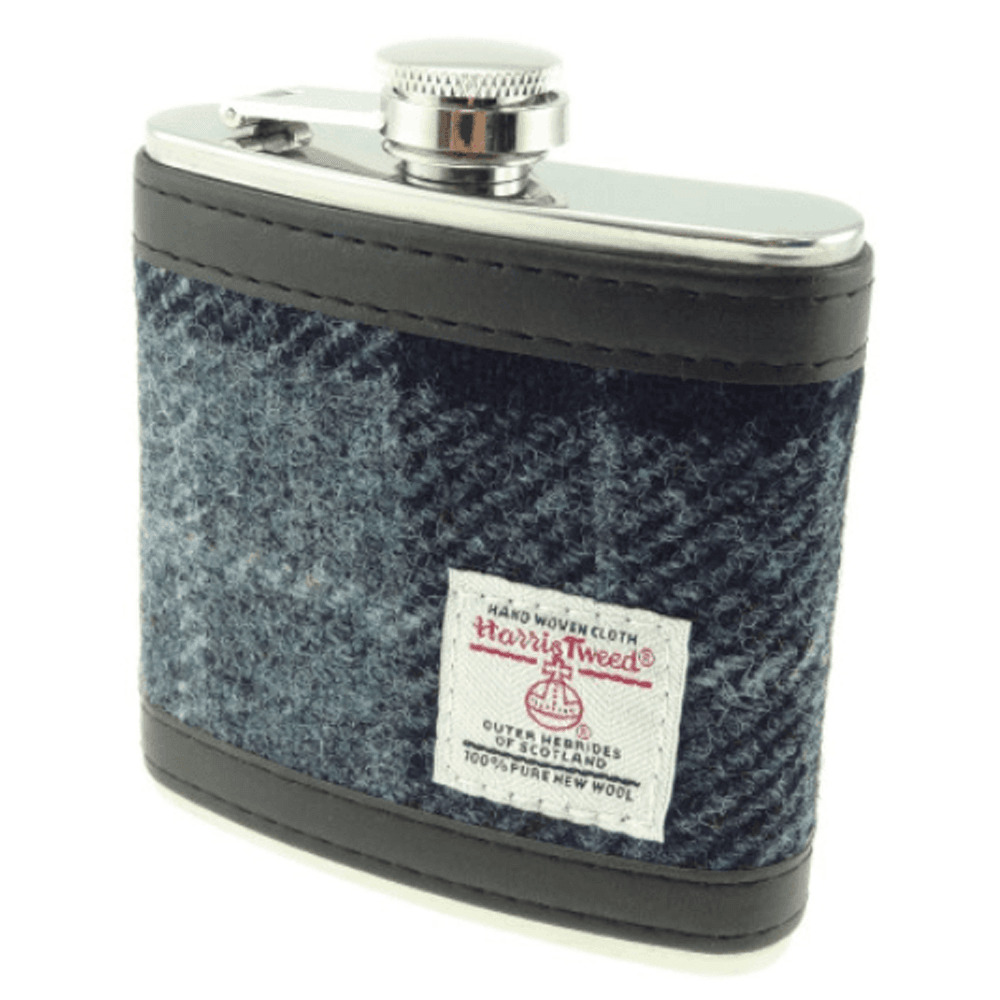 Glen Appin of Scotland 6oz Harris Tweed Hipflask - Grey Black Tartan 2100-95