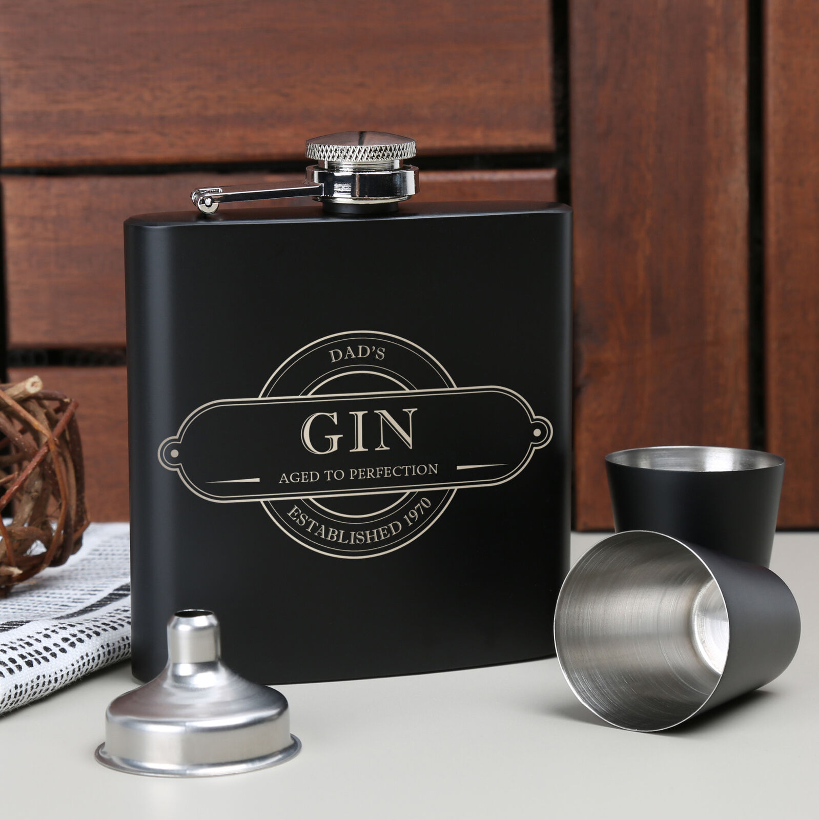 Dad Personalised Gin Hipflask Gift Engraved Hip Flask & Funnel Spirits Gifts Set