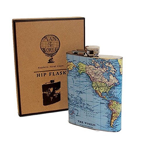 Gift Republic Man of The World Map Hip Flask, Stainless Steel, Blue