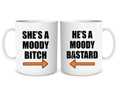 Peachy Antics Set of 2 Mugs Funny Rude Couples Mug Set Coffee Mugs Cup Moody Bitch Moody B*stard Novelty Joke Wedding Gift Housewarming Present His and Hers WSDMUG1939, White