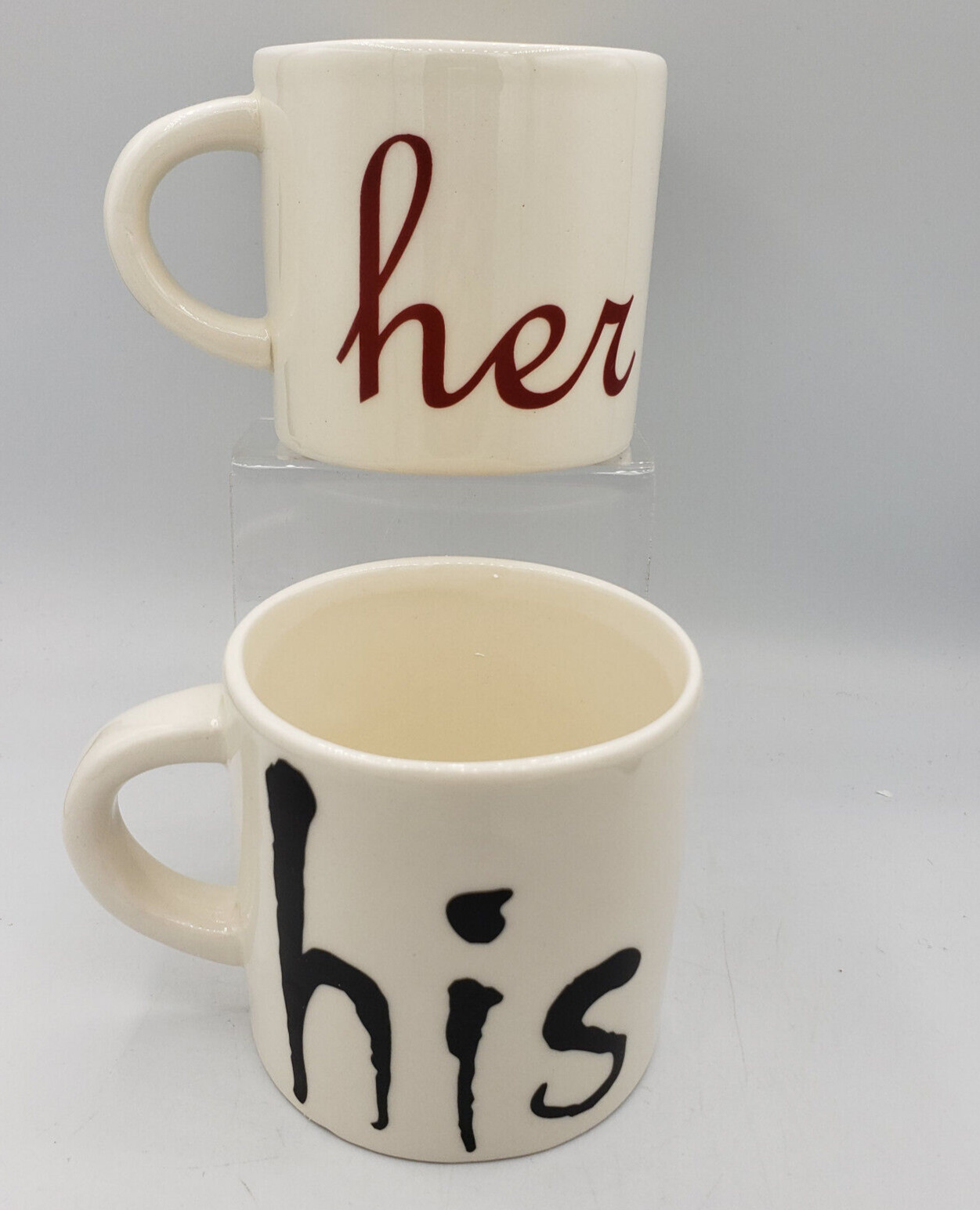 White His and Hers Mugs Boxed with Raised Black Red Lips & Moustache On Base
