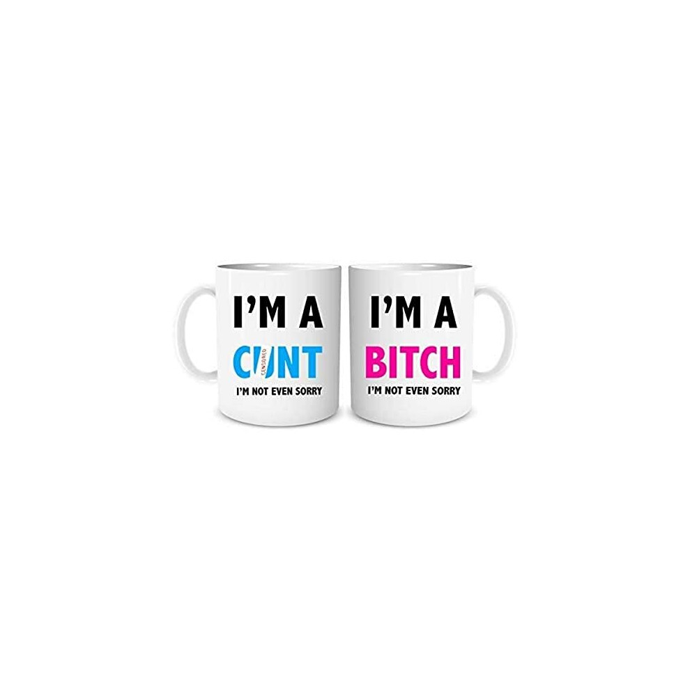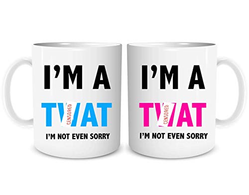 His and Hers Couples Mug Set Funny Joke Gifts Present Anniversary Birthday Christmas Gifts Funny Coffee Mugs I'm A Twat Not Sorry WSDMUG1329