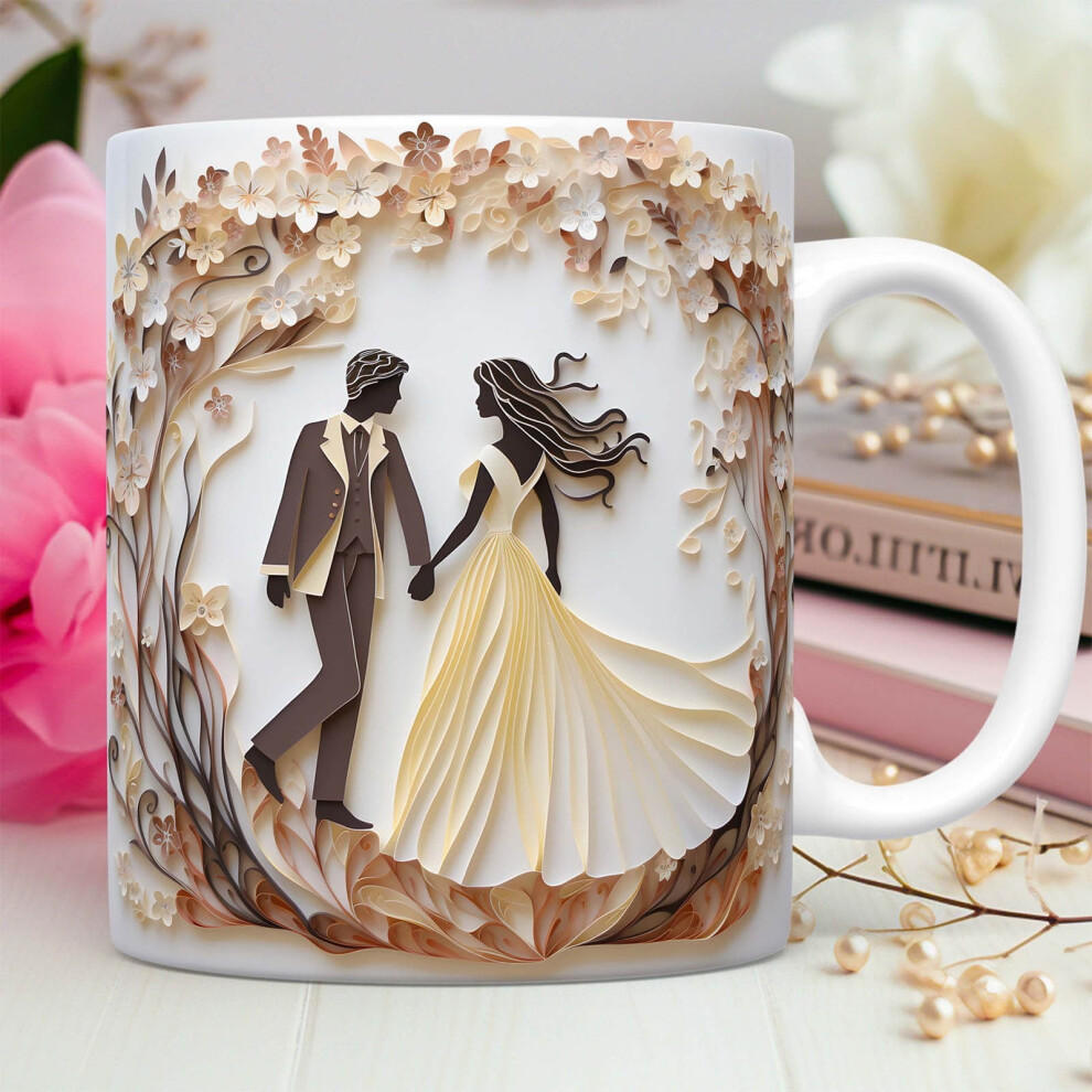 Triple Gifffted Mr and Mrs Coffee Mugs - Engagement Gifts for Couples, Wedding Anniversary, Newlyweds, Bride & Groom, Christmas, Valentines for Parents, His & Hers, Ceramic Cup, 380ML