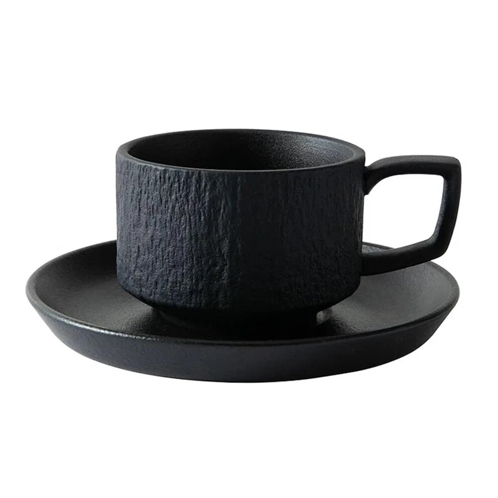 Ceramic Couple Coffee Mugs with Plates Black His and Hers Set Romantic Gift Dishwasher Safe