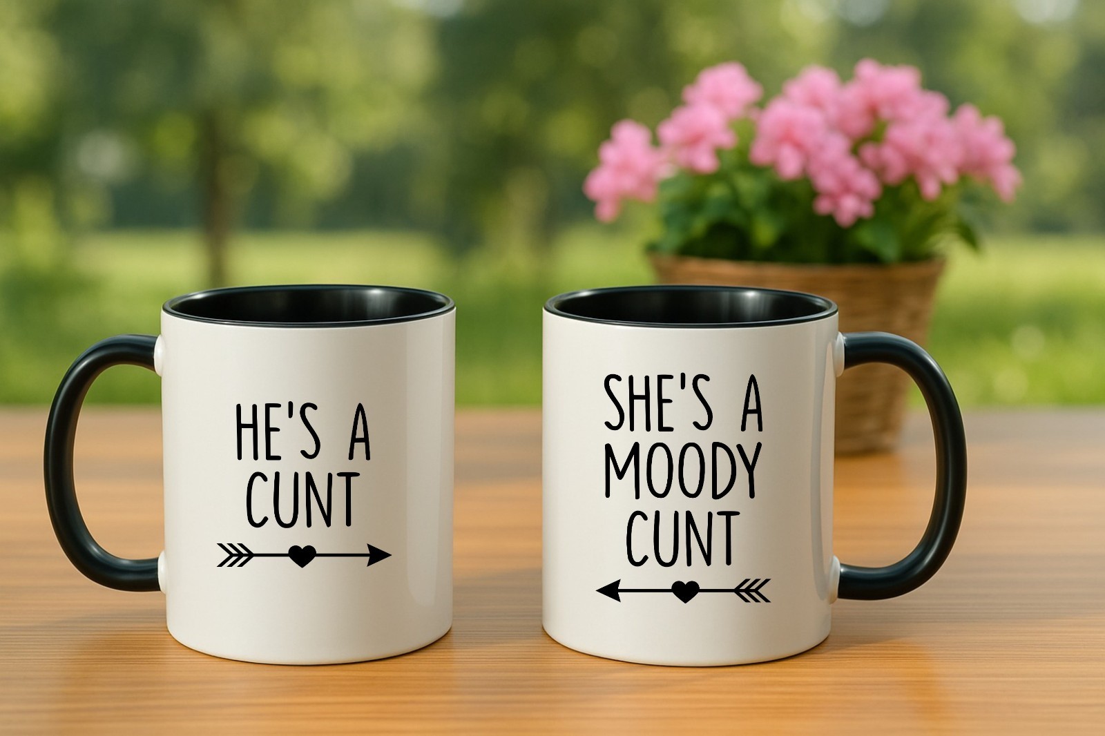 His & Hers Mugs He's a C**t She's A Moody Printed Couples Friend Funny Gift Cups