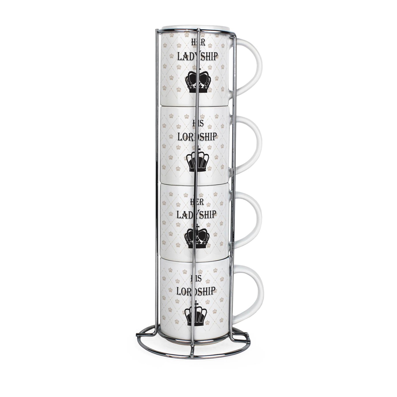 Lord & Ladyship Small Stacking Mugs Set - His and Hers Present - Set of 4 Gift