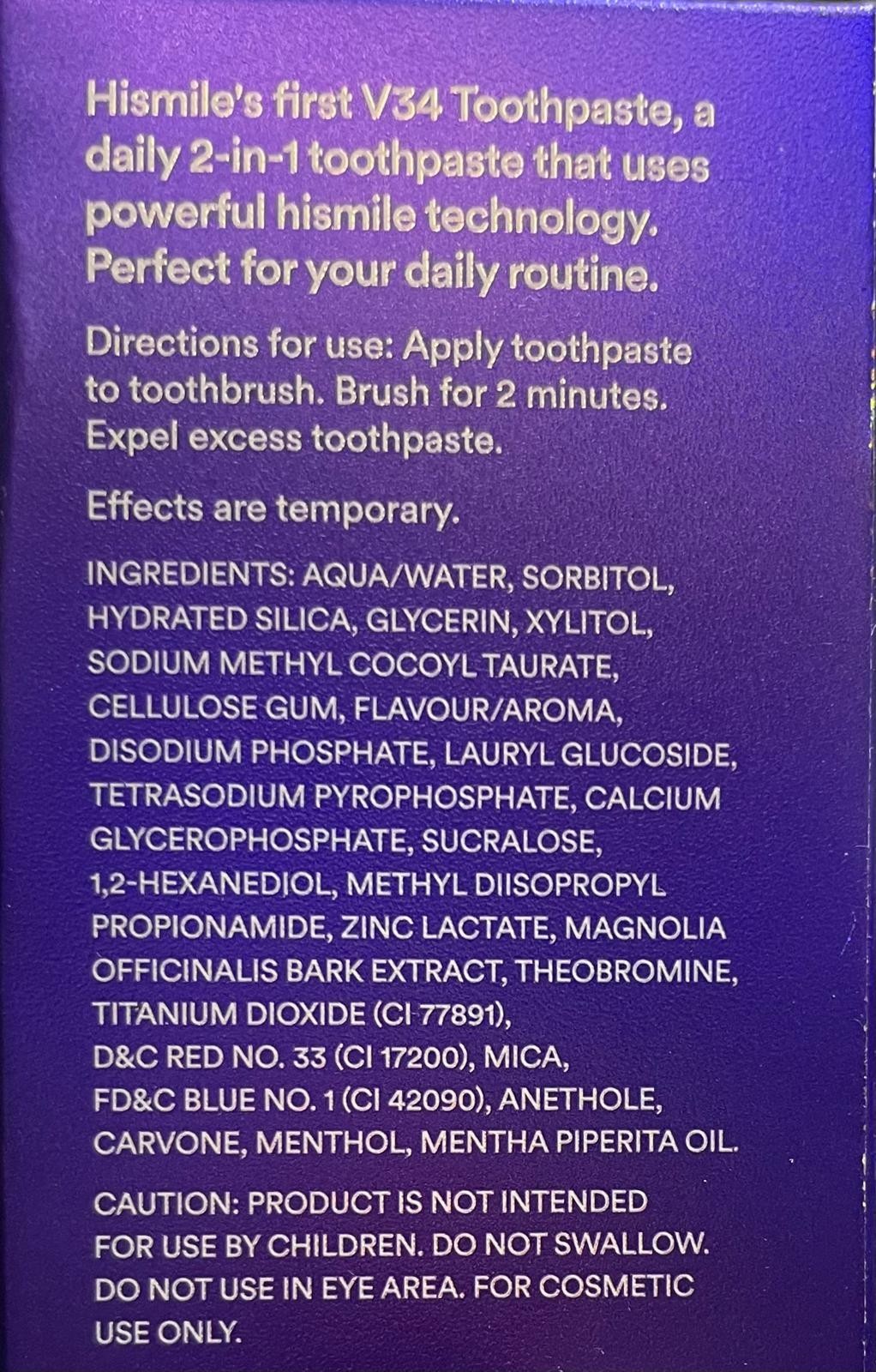 Hismile V34 2-In-1 Colour Corrector Toothpaste - 100g - Brand New