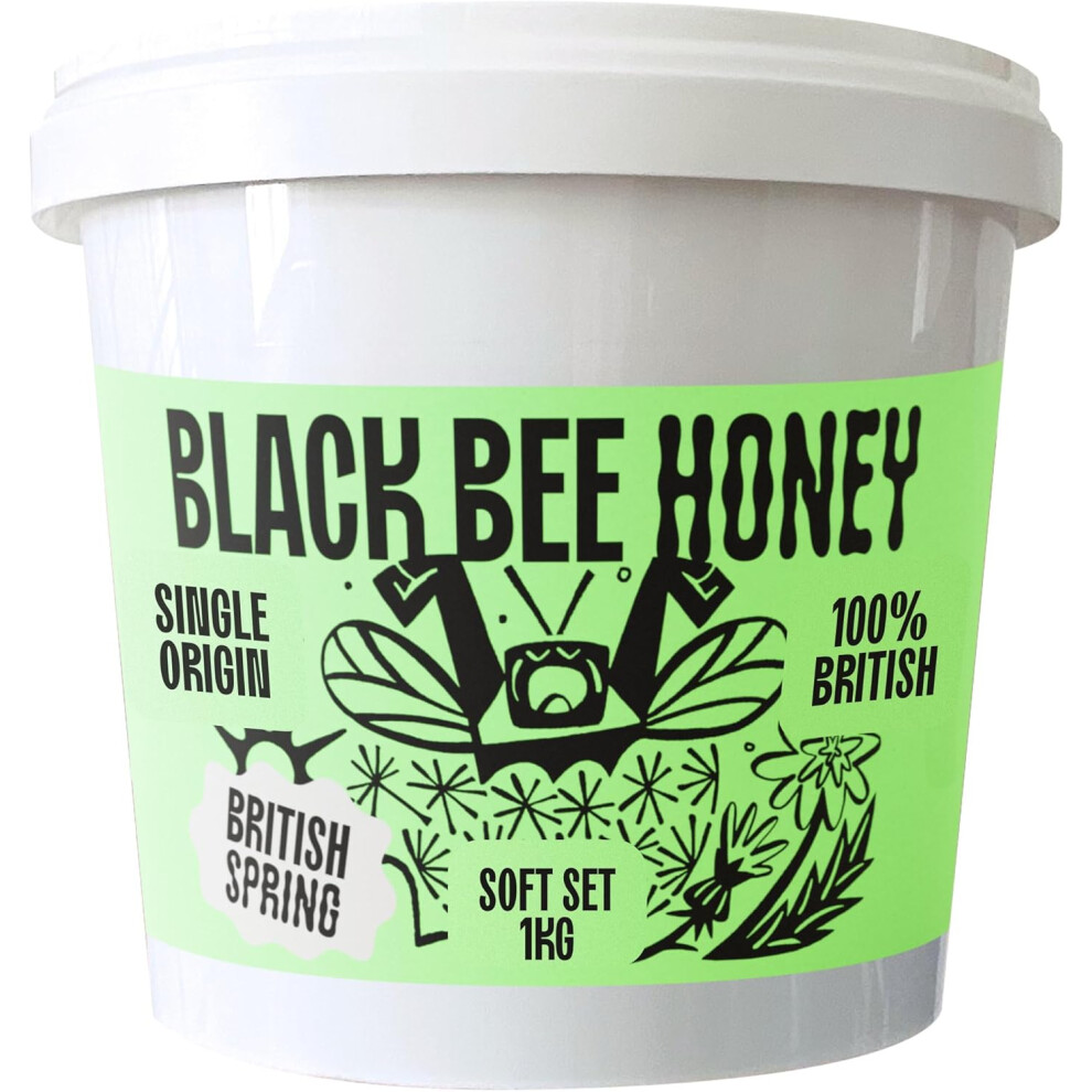 Black Bee Honey - Pure Spring British Soft Set Honey, Creamy with a Light Sweetness, Unprocessed, Single Source from Hive to Jar, Never Blended - Delicious on Toast, Soothing in Drinks, 1Kg Tub