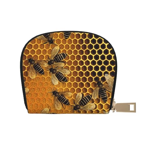 LKTPSKQRY Leather Credit Card Holder for Women Men Wallet Mini Coin Purse Pouch Bees on hive Change Purse with Zipper Business Card Case