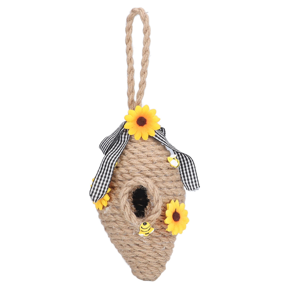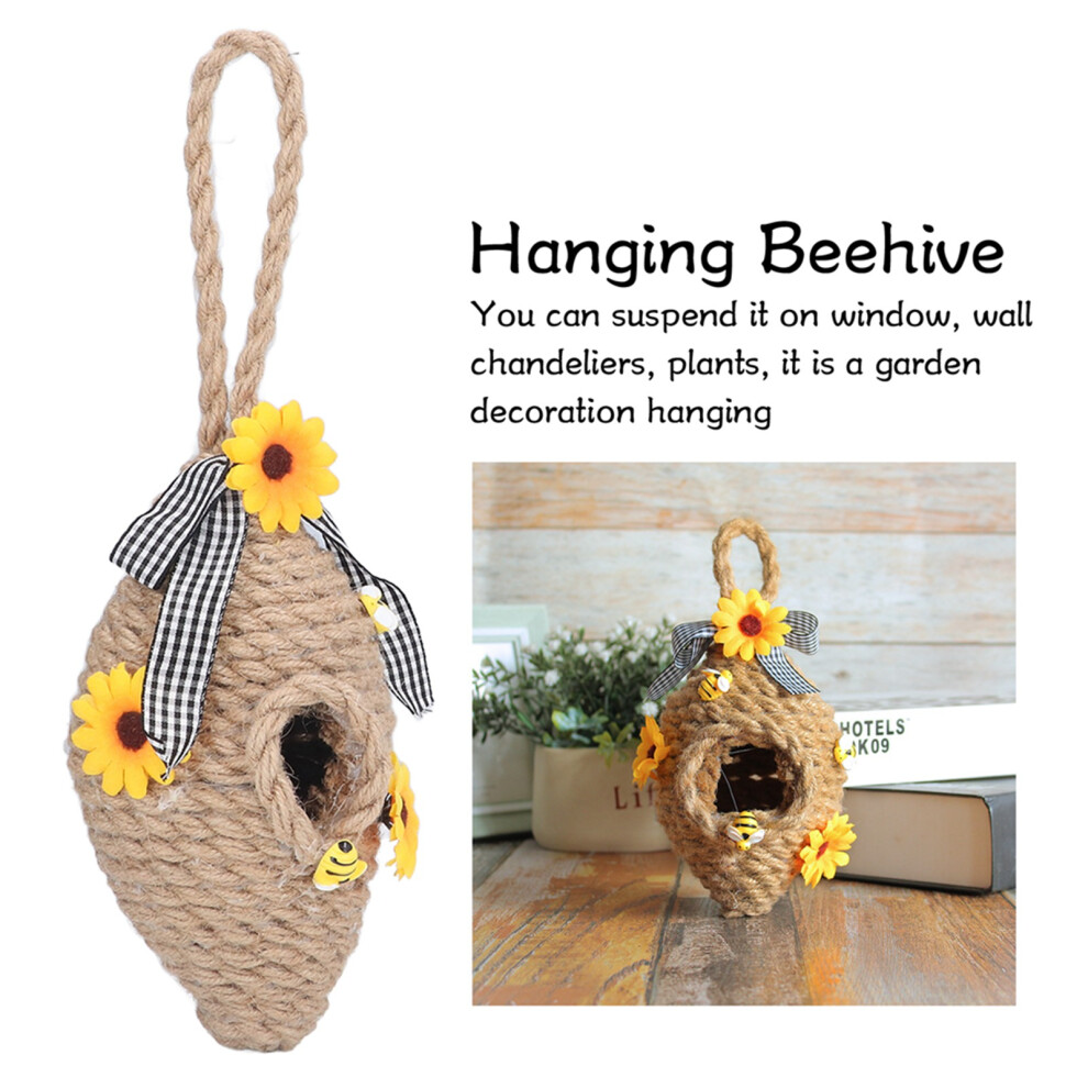 Beehive Decor Farmhouse Style, Spring Summer Decor Sunflower Ornaments Enhance Colorfulness Mini Jute Hive Strong Durable Construction for Garden