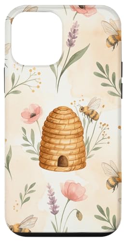 Watercolor Bee Garden Hive Floral Illustration Design Case for iPhone 12 mini