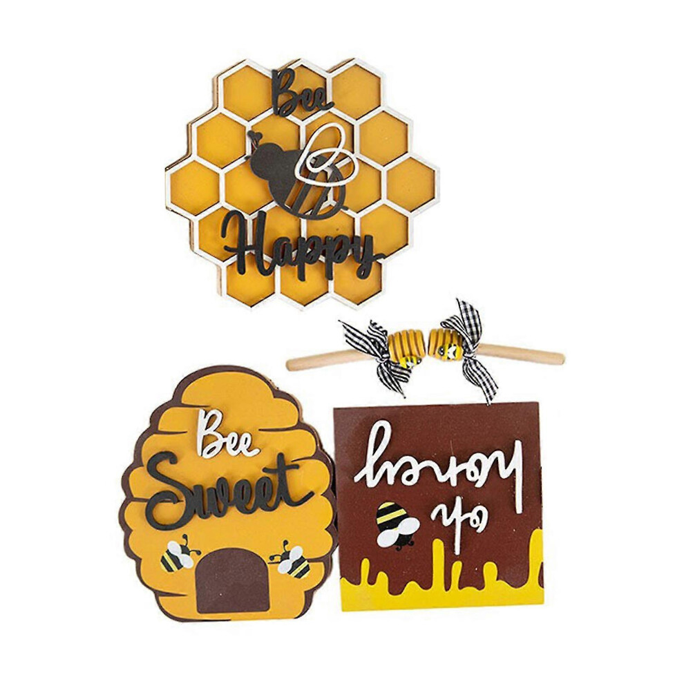 (As show, One size) Tiered Tray Decor Bee Hive Mini Wood Signs Bumble Bee Tiered Tray Decorations Set Rustic Farmhouse Spring Summer Home Decor