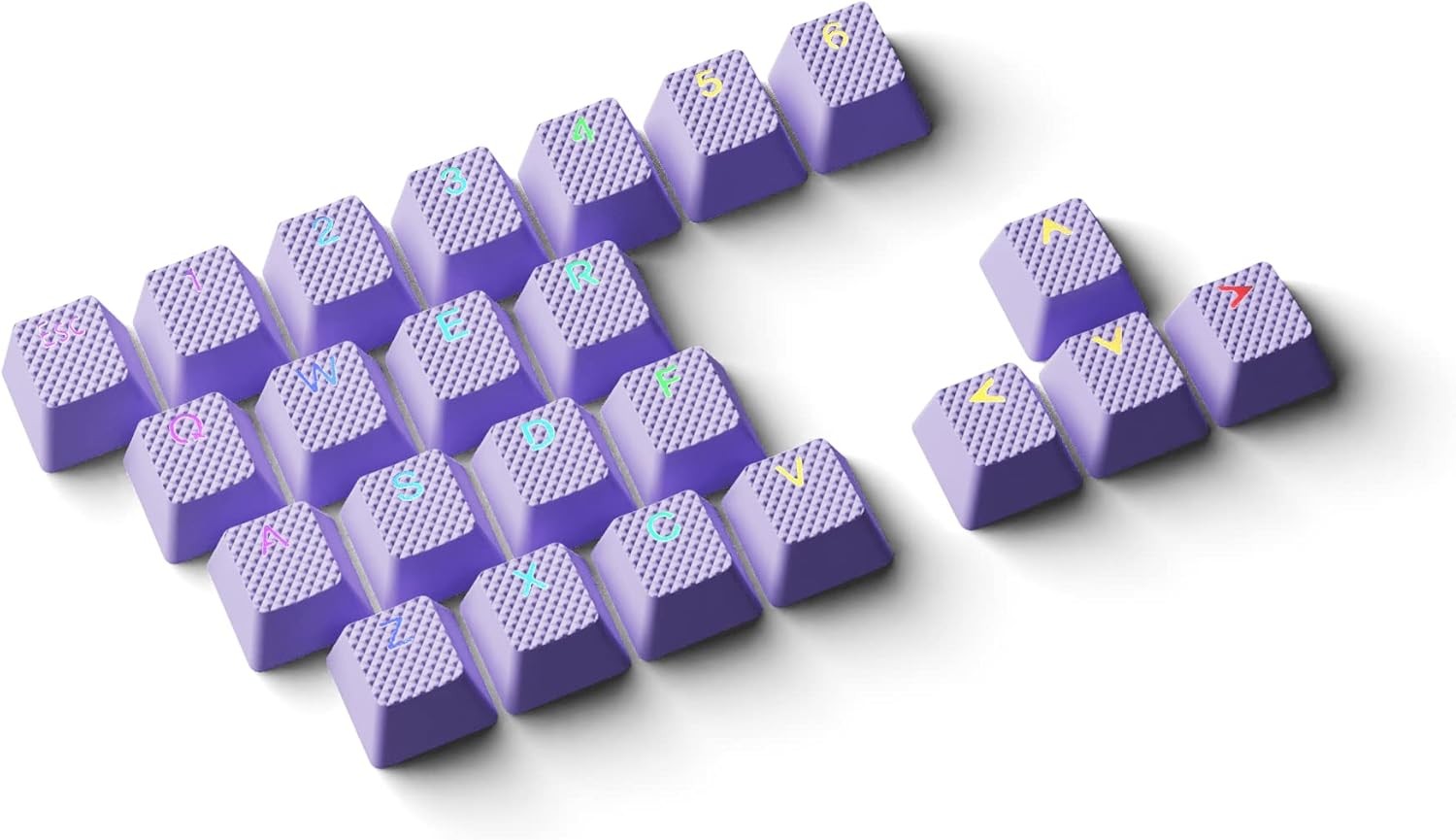 HK Gaming Rubber Keycaps | Anti-Slip Texture | Doubleshot Backlit Keycap Set | 23 OEM Profile Keys | For Mechanical Keyboard | Compatible with Cherry MX, Gateron, Kailh | Lavender